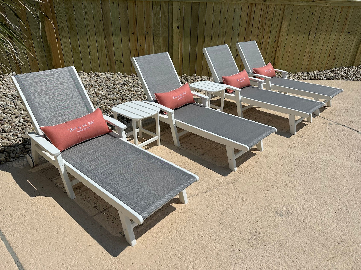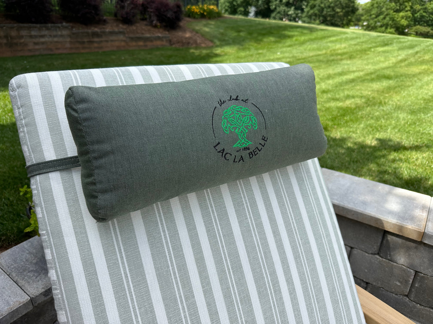 Embroided Chaise Pillows and Adirondack headrest add additional comfort and branding to resorts and vacation homes alike.